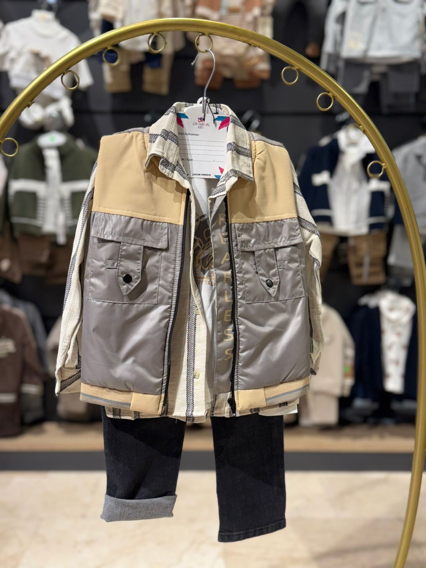 Şık görünümü rahatlıkla buluşturan bu ceketli çocuk takımı, modern tasarımıyla öne çıkar. Fermuarlı ve cep detaylı ceket, kullanışlı yapısıyla günlük kullanımda pratiklik sunarken yumuşak dokusu sayesinde konfor sağlar. İç kısımdaki çizgili parça kombine hareket katarak daha dinamik bir görünüm oluşturur. Siyah pantolon ile tamamlanan bu takım, hem günlük kombinlerde hem de özel günlerde güvenle tercih edilebilecek ideal bir seçenektir.