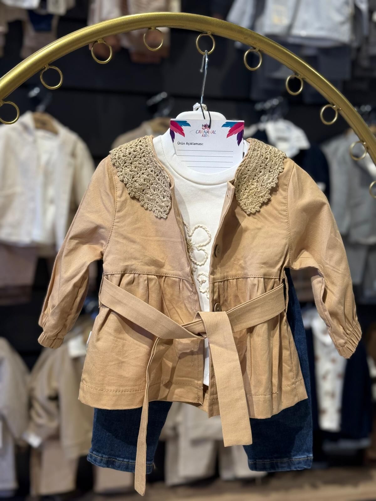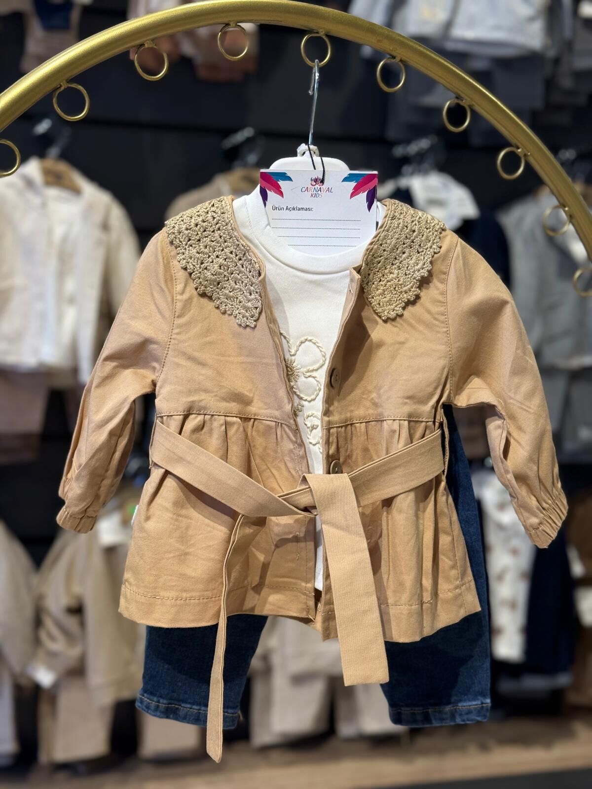 Dantel yaka detaylarıyla zarif bir görünüm sunan kuşaklı 3’lü takım, şıklığı ve rahatlığı bir arada sağlıyor. Kaliteli kumaşıyla gün boyu konfor sunarken, kuşak detayı sayesinde vücuda oturan hoş bir siluet oluşturur. Günlük ve özel davetler için ideal bir seçim.