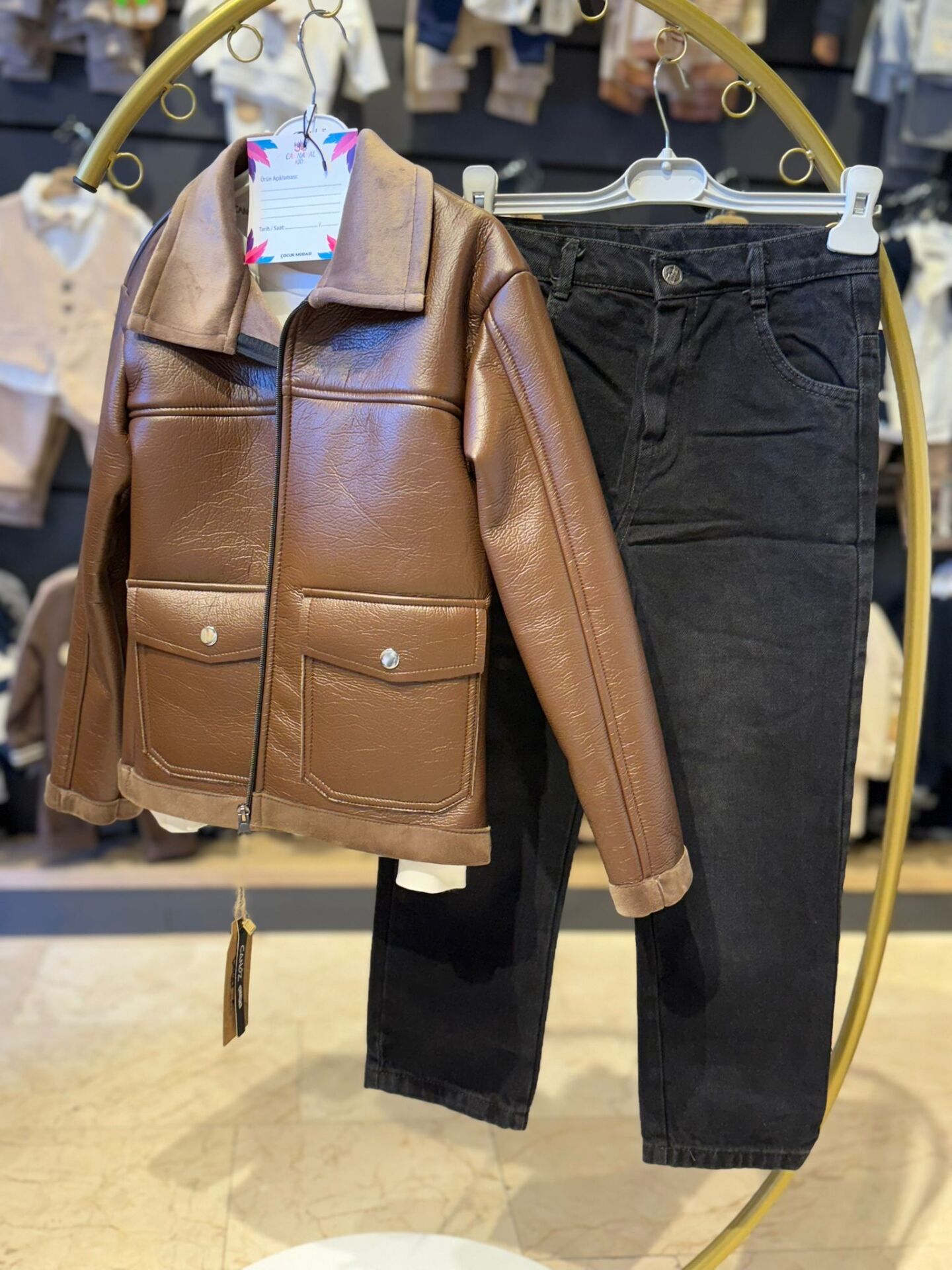 Deri Görünümlü Ceketli Çocuk Takımı