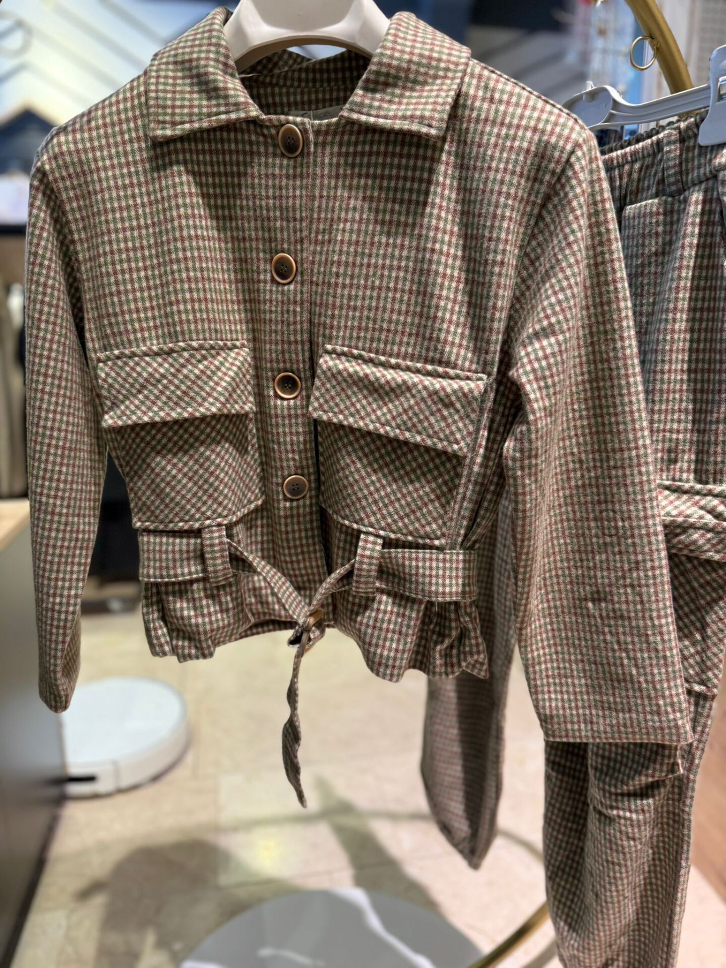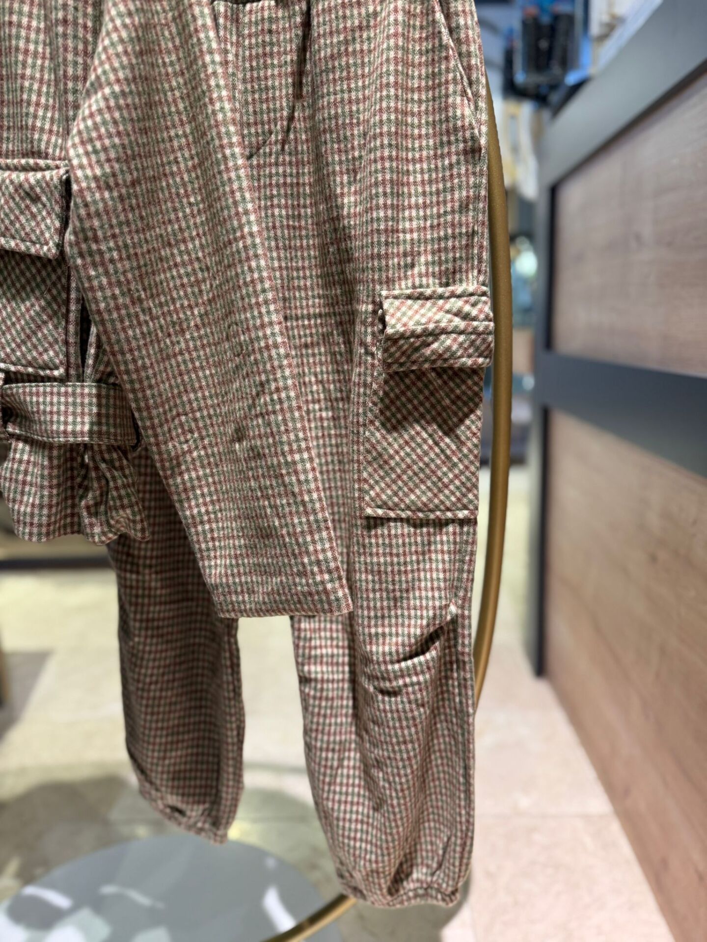 Escabel marka kız çocuk ceketli pantolon takımı, klasik ve şık tarzı bir araya getiren özel bir tasarıma sahiptir. Kareli desenli ceket, ön kısmındaki düğme kapama detayı, kapaklı cepleri ve bel kısmında yer alan ayarlanabilir kemer detayıyla hem şık hem de modern bir görünüm sunar. Yakalı ve uzun kollu yapısı sayesinde serin havalarda rahat kullanım sağlar. Takımı tamamlayan pantolon, lastikli bel yapısı ile çocuğun hareket özgürlüğünü desteklerken gün boyu konfor sunar. Yumuşak dokulu kumaşı ve özenli kesimiyle dikkat çeken bu takım; özel günler, davetler ve şık günlük kombinler için tercih edilebilir bir settir.