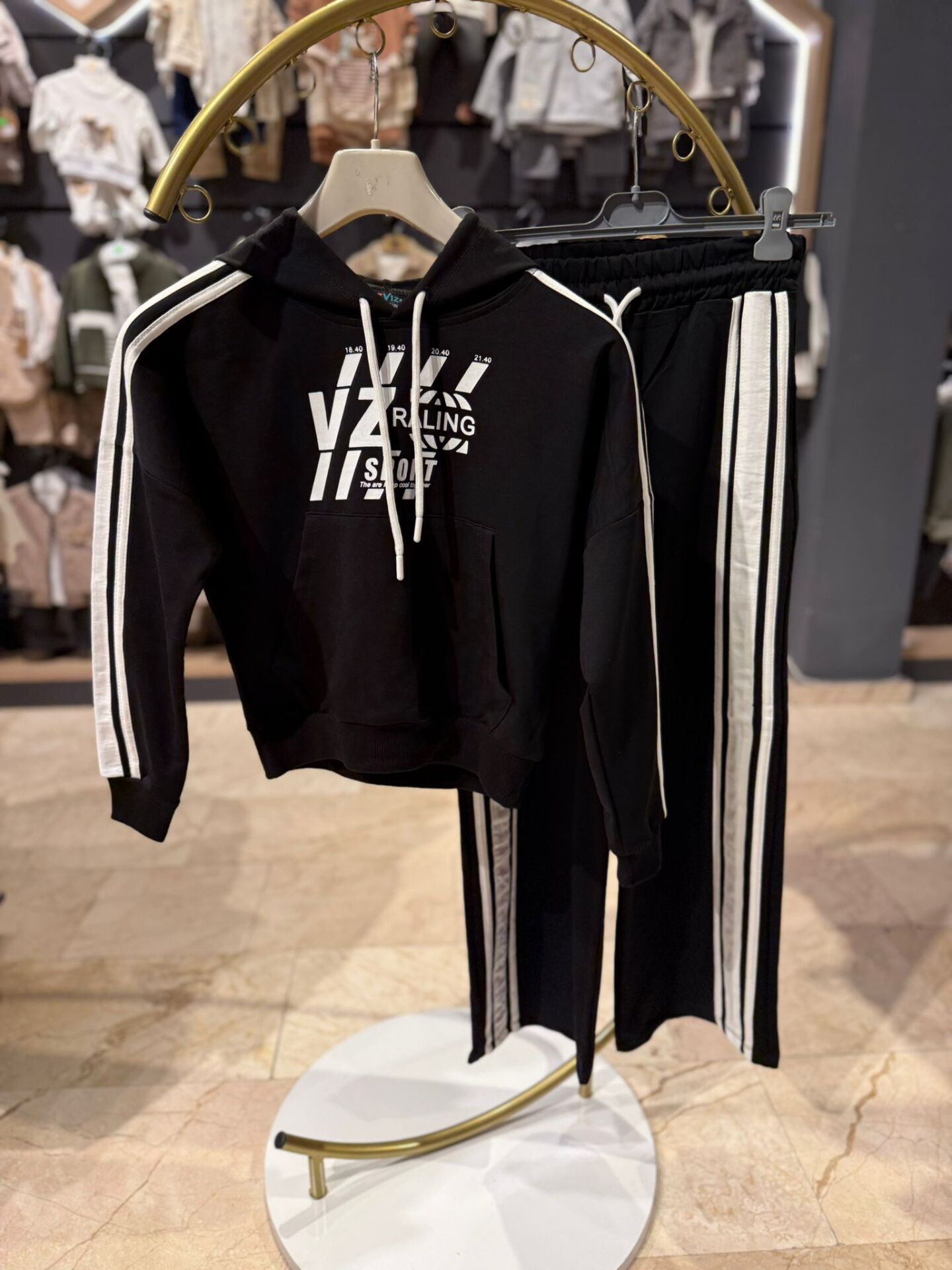 Kız çocukları için tasarlanan bu kapüşonlu eşofman takımı, spor ve rahat tasarımıyla günlük kullanıma uygundur. Kapüşonlu üst parça, ön cep detayı ve kol şeritleriyle modern bir görünüm sunarken yumuşak dokulu kumaşı sayesinde gün boyu konfor sağlar. Alt parça ise elastik bel yapısı ve rahat kesimiyle hareket özgürlüğü sunar. Okulda, günlük aktivitelerde ve oyun saatlerinde rahatlıkla tercih edilebilecek kullanışlı bir takımdır.