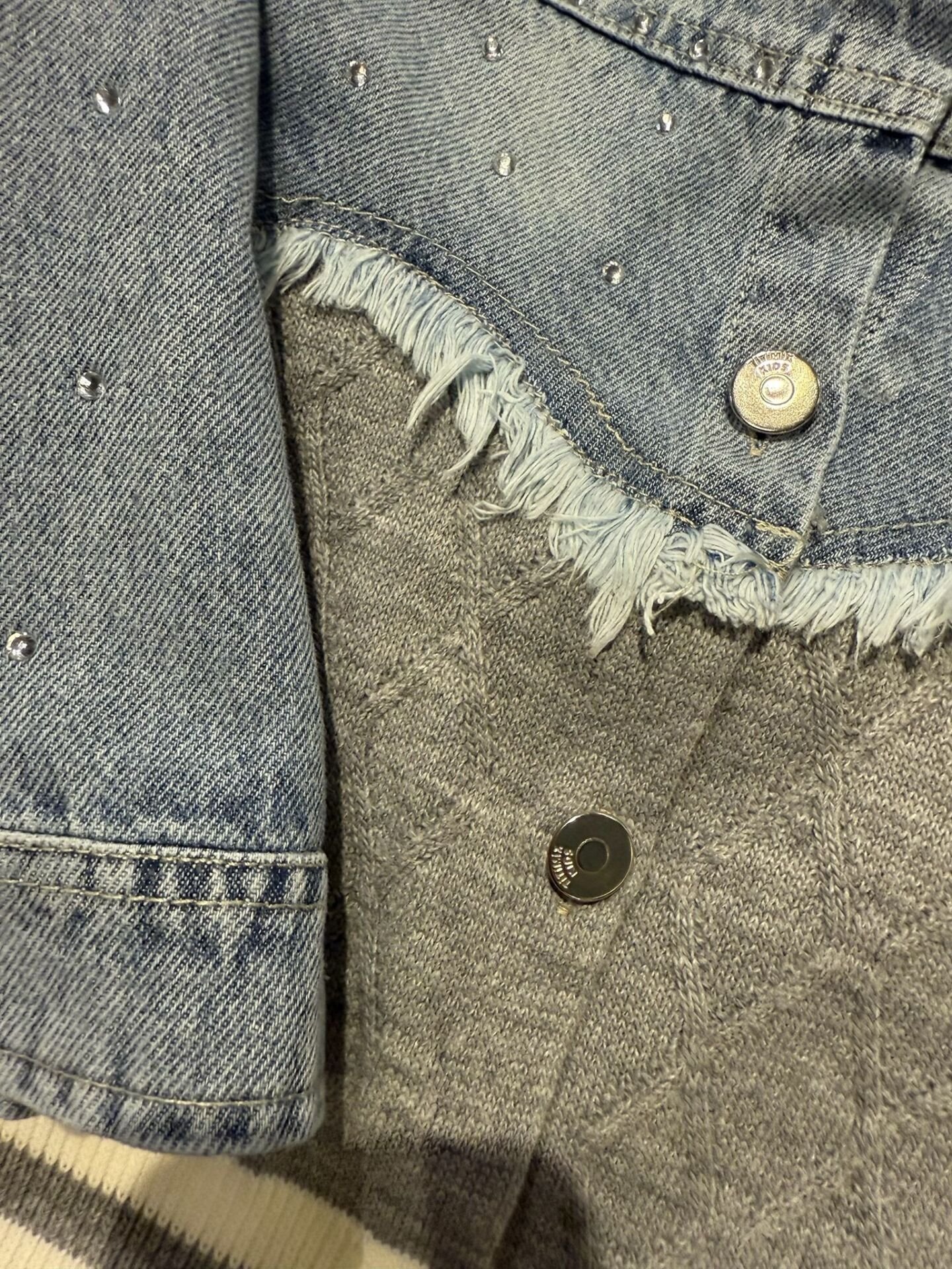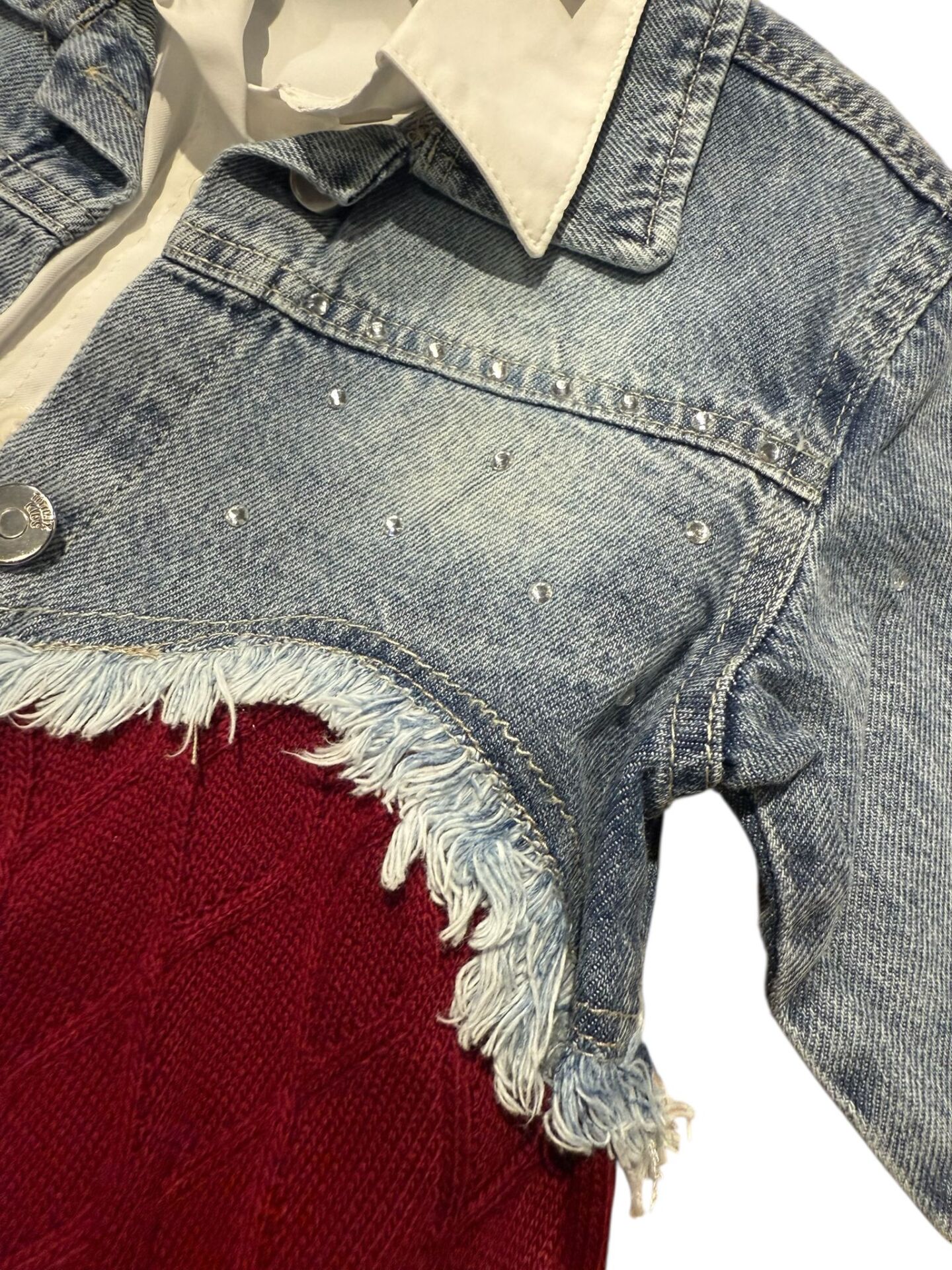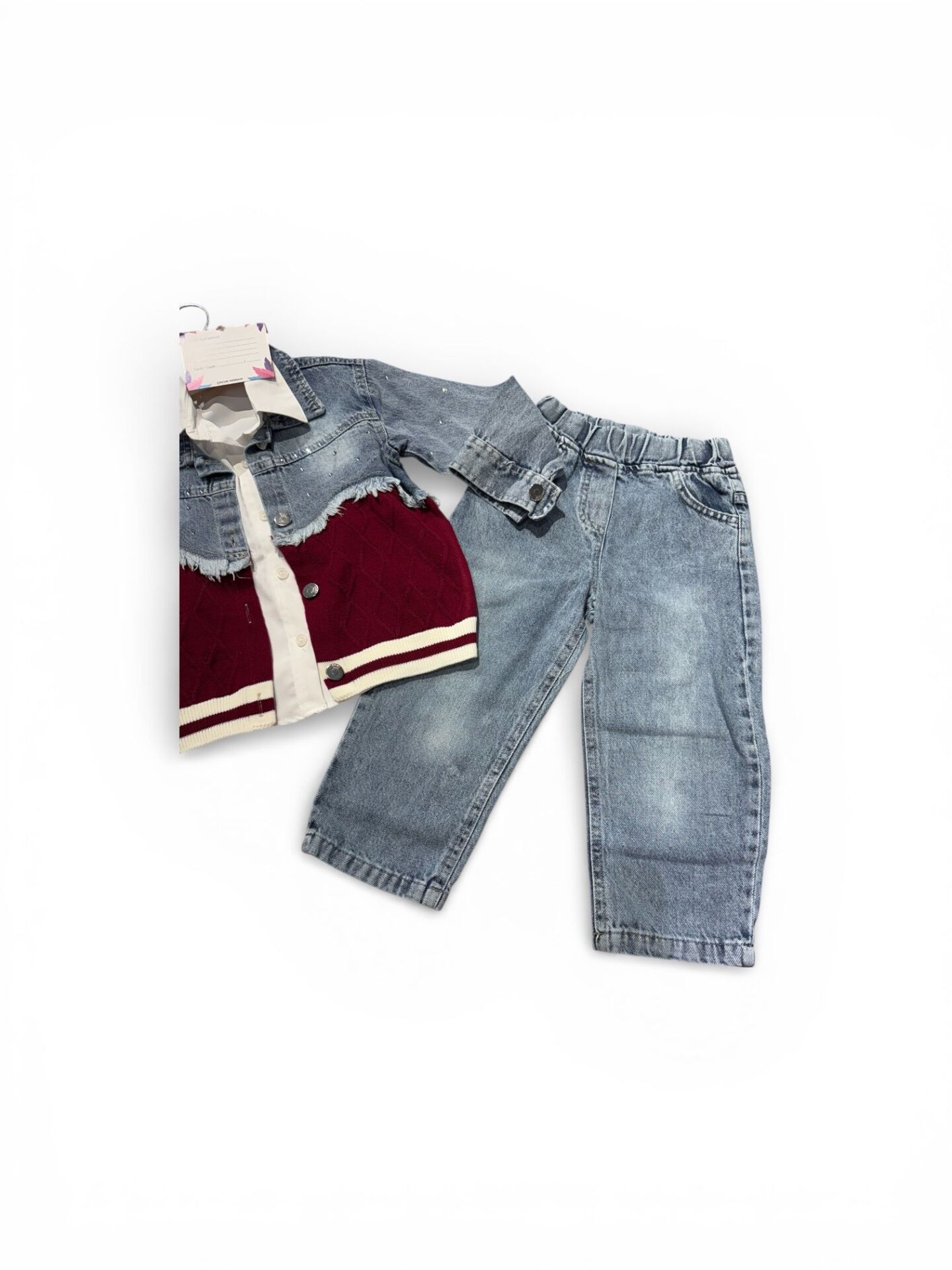 Kız Çocuk Kot Ceketli Gömlekli Pantolonlu 3’lü Takım