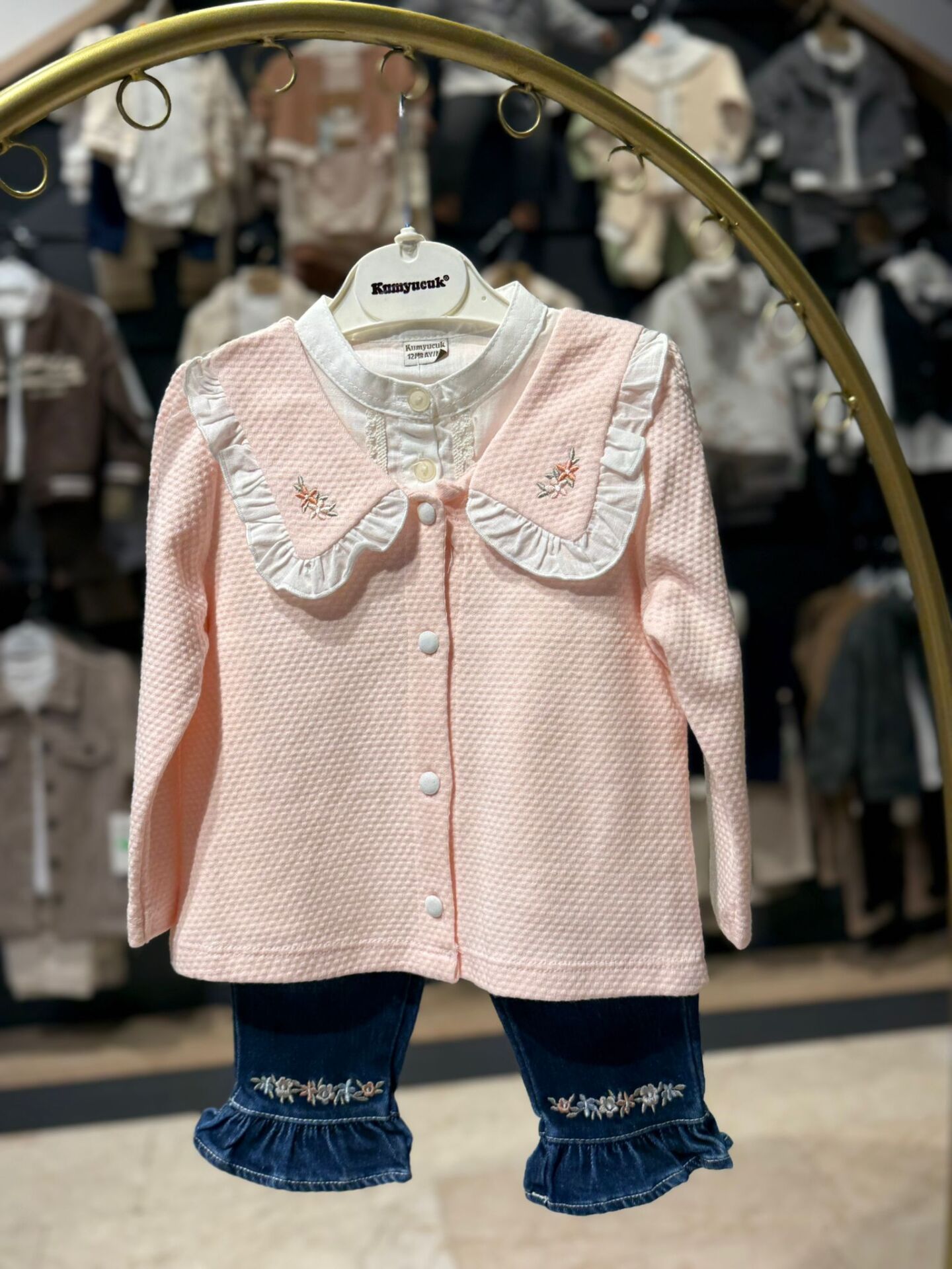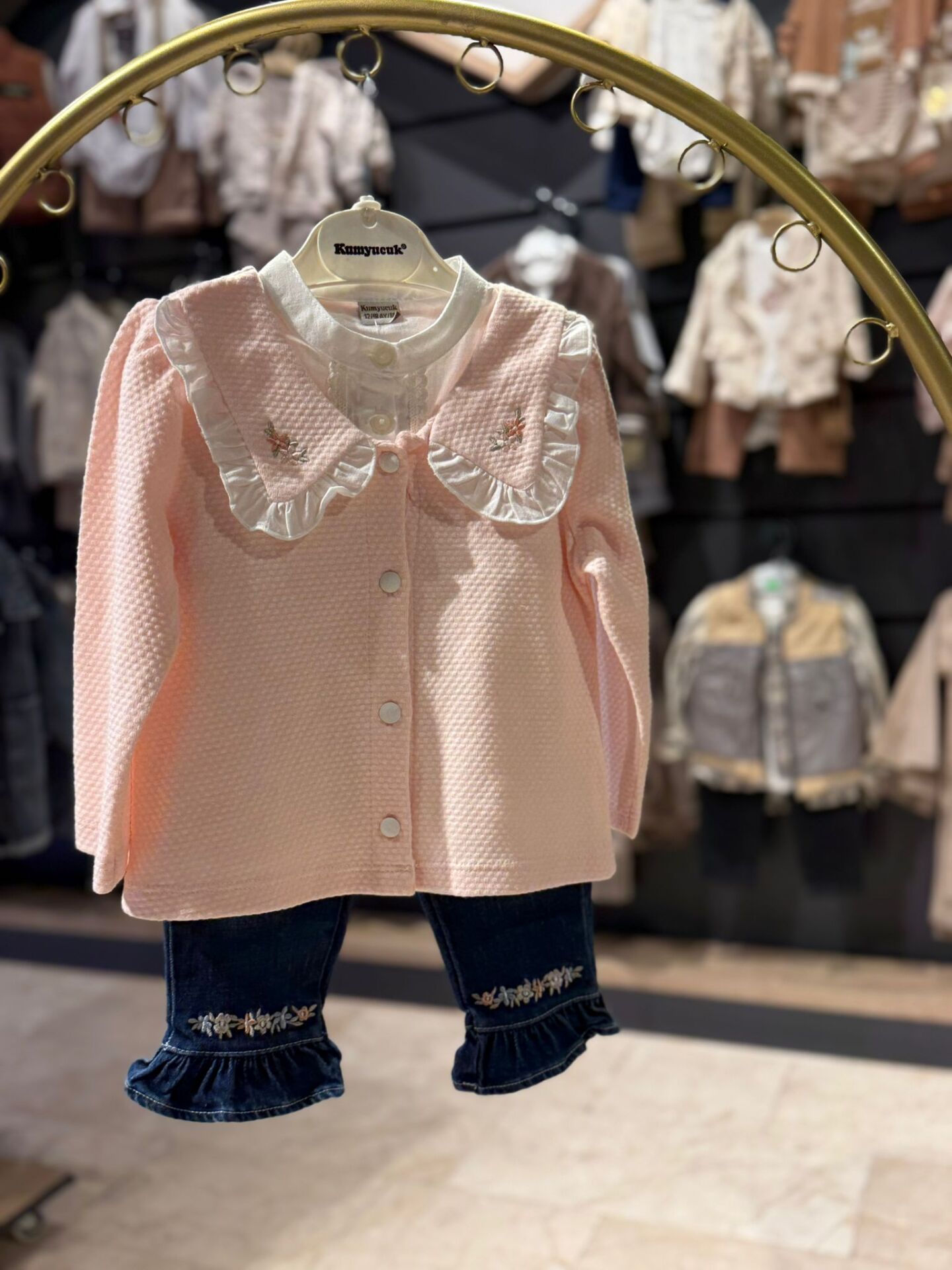 KIZ ÇOCUK NAKIŞ DETAYLI JEAN PANTOLON GÖMLEK HIRKA KONBİN