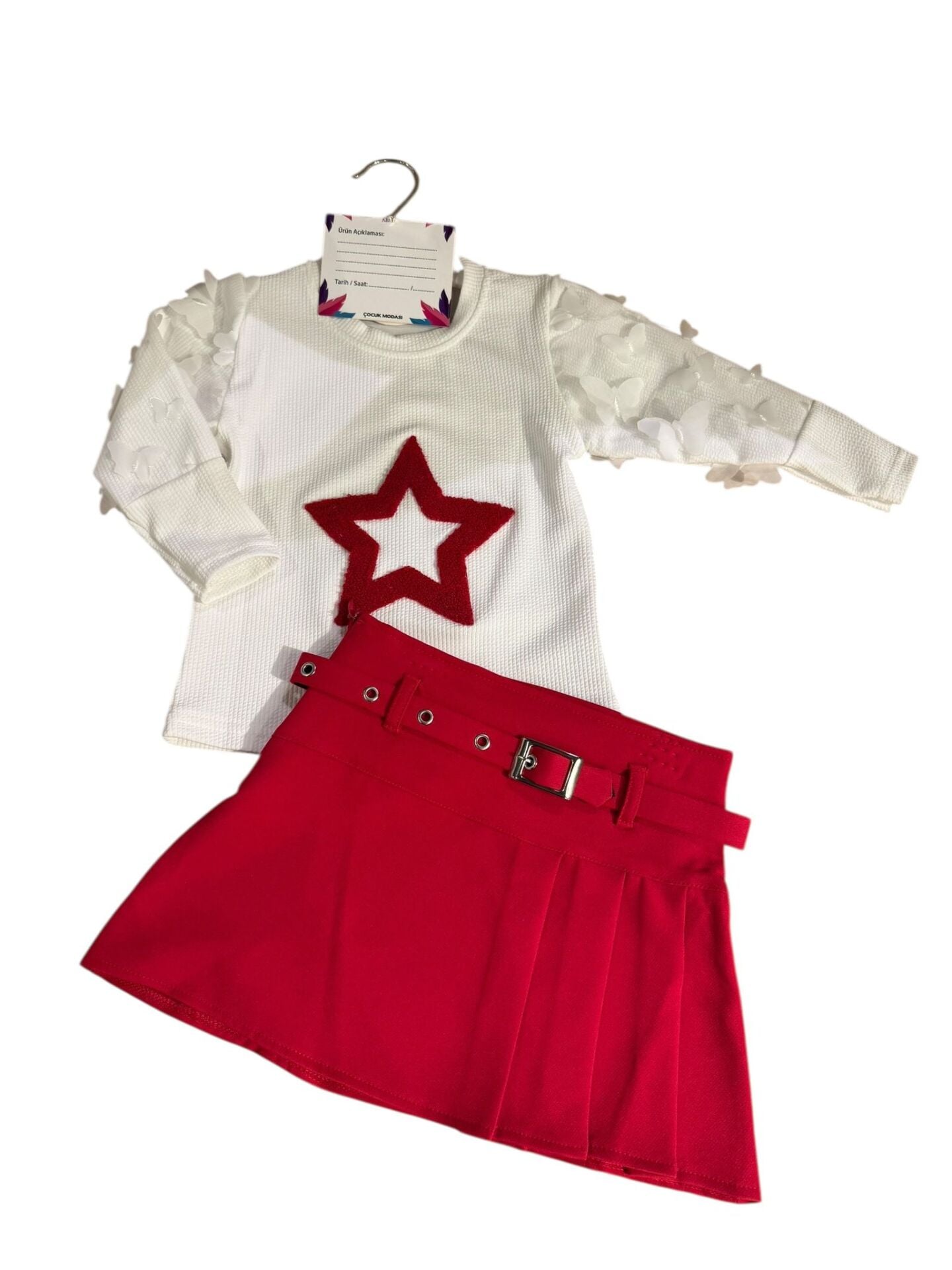 Kız çocukları için tasarlanmış yıldız desenli 2 parçalı etek ve bluz takımı, şıklığı ve rahatlığı bir arada sunar. Yumuşak kumaşı sayesinde gün boyu konfor sağlar. Canlı renkleri ve sevimli desenleriyle küçük kızların favorisi olacak ideal bir tercih.