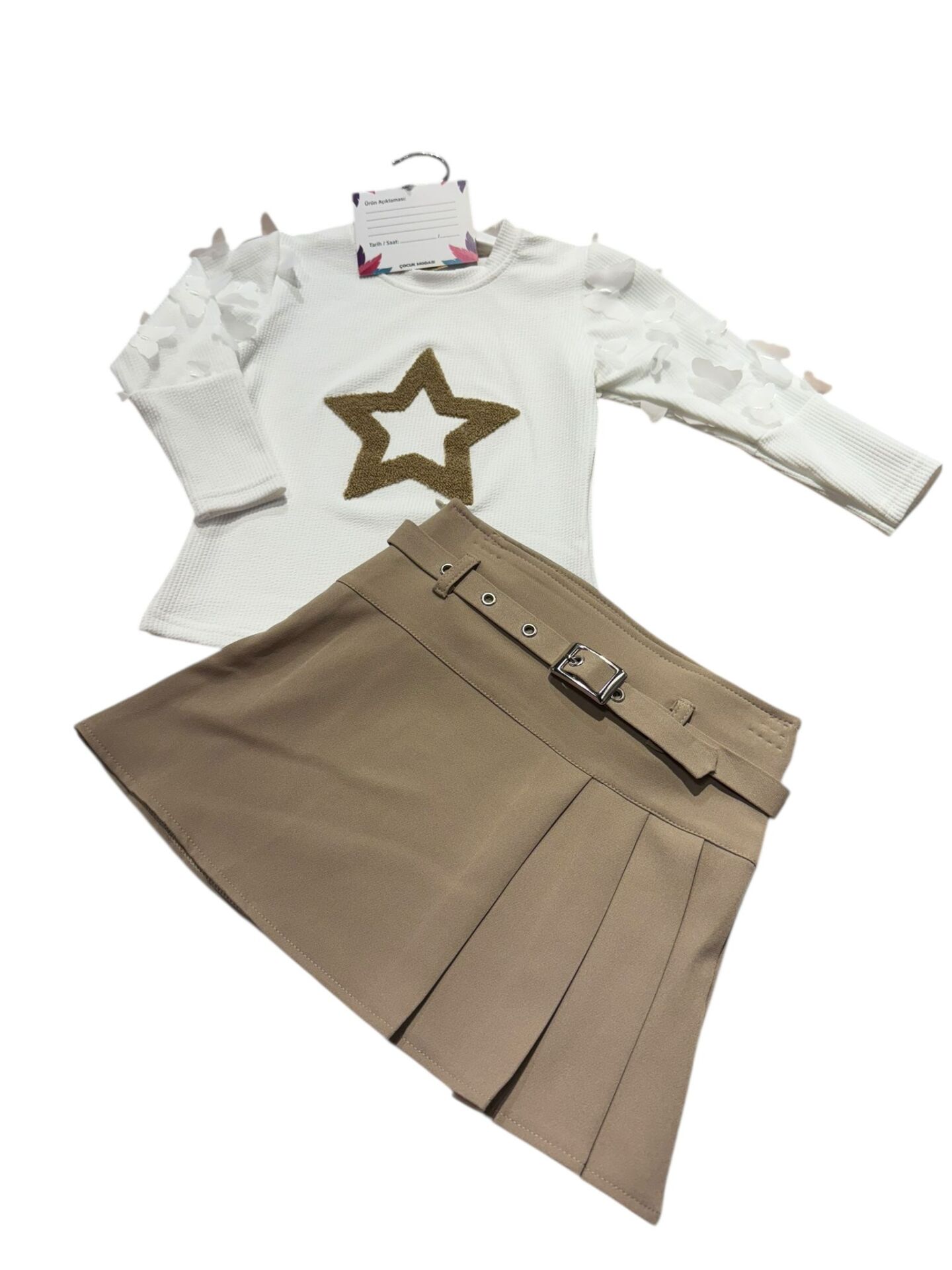 KIZ ÇOCUK YILDIZLI ETEK BLUZ 2Lİ TAKIM