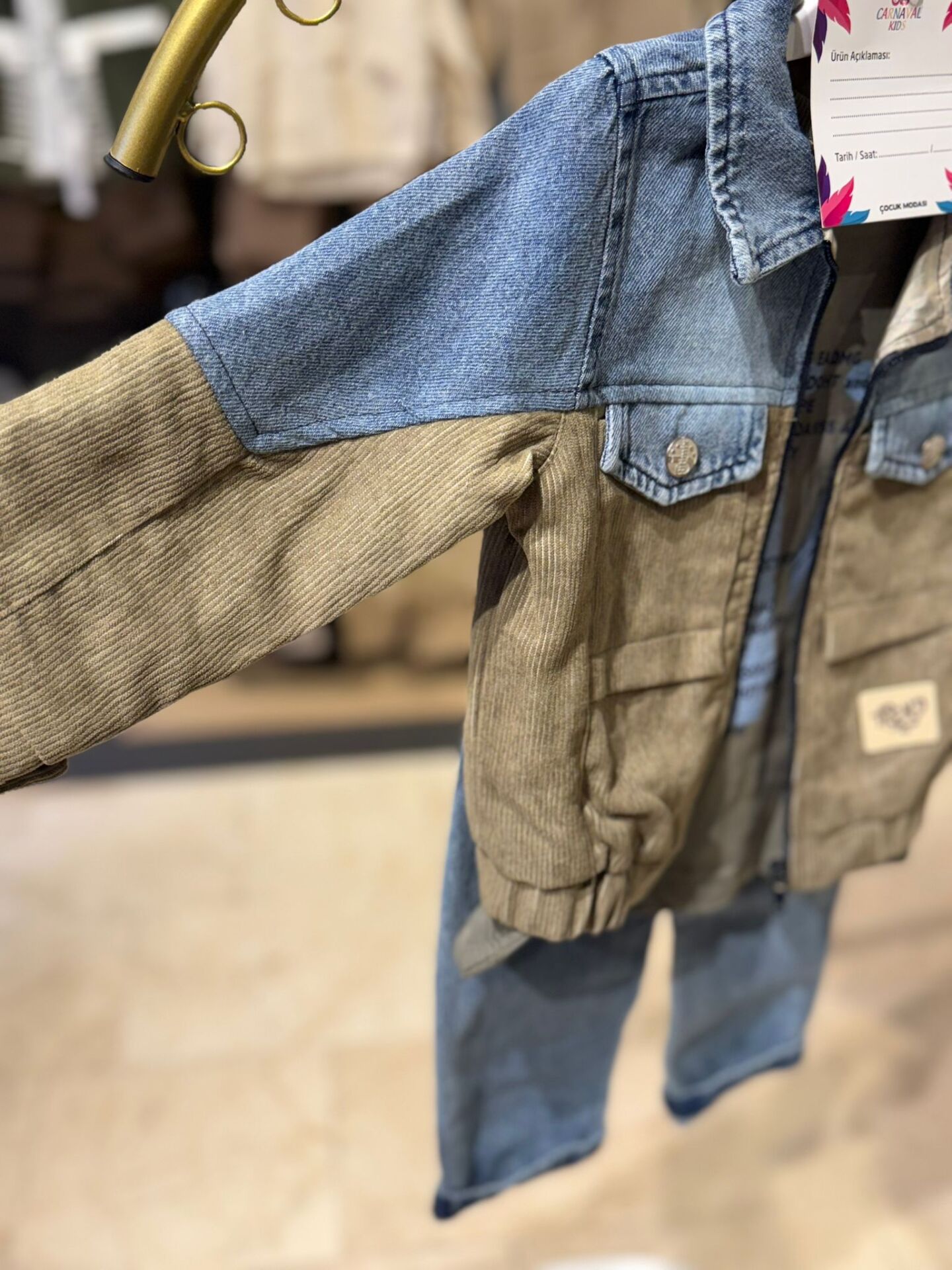 Kot Detaylı Ceket, Tişört ve Pantolon Erkek Çocuk Üçlü Takım