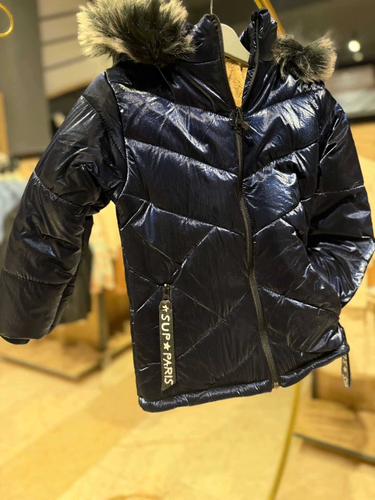 Kürk Kapüşonlu Parlak Şişme Çocuk Mont – Fermuarlı Kışlık Mont